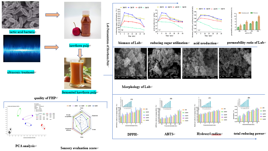 近日,食品科學與工程學院朱傳合教授團隊在《Food Chemistry》發表了題為“Effect of ultrasonic pretreatment on fermentation performance and quality of fermented hawthorn pulp by lactic acid bacteria”的研究論文。研究生劉源為論文的第一作者,朱傳合教授為該論文的通訊作者。