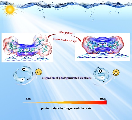 本工作通過合理的分子設計,合成了兩種含有不同末端官能團但能級相似的銅卟啉(CuPy)衍生物。制備了氮化碳(CN)/銅卟啉范德華異質(zhì)結(jié),并對其光催化氫氣進化(PHE)性能進行了表征。實驗和理論計算表明,除了由分子結(jié)構(gòu)決定的光電特性外,分子構(gòu)象(即平面度)通過調(diào)節(jié)分子間距離在電荷轉(zhuǎn)移過程中發(fā)揮著同樣重要的作用。當分子間距離合理時,即使在能級排列未達到最佳的條件下,仍能發(fā)生有效的電荷轉(zhuǎn)移。此外,該研究發(fā)現(xiàn)即使在0.1 eV的能級差下,異質(zhì)結(jié)依然可以發(fā)生有效的電荷轉(zhuǎn)移。上述研究有助于加深對OSCs異質(zhì)結(jié)光催化劑的理解,為高效OSCs光催化劑的設計提供了新的思路。
