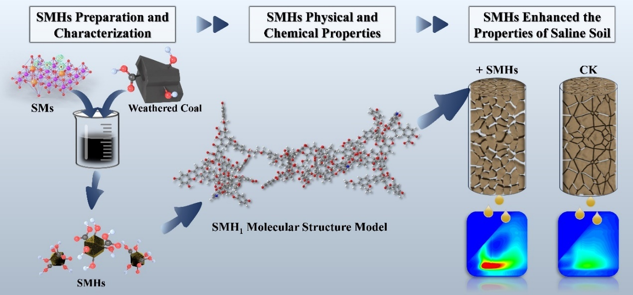 本研究成功制備了一種新型選擇性改性劑(SMs),該改性劑通過將鈉和銅共摻雜到Birnessite晶格中,實現了對腐植酸的高效提取和靶向活化。研究表明,改性腐植酸則表現出酸性官能團的增加、分子量的降低以及脂肪族碳的轉化。明確了腐植酸通過優化土壤團聚體組成、促進鹽漬土鹽分淋洗這兩個關鍵機制,實現了對鹽漬化土壤的有效改良。這項研究不僅強調了有針對性地對腐植酸進行改性的重要性,更證明了這些改性劑在提升土壤質量、推動生態農業及環境修復方面的巨大潛力。