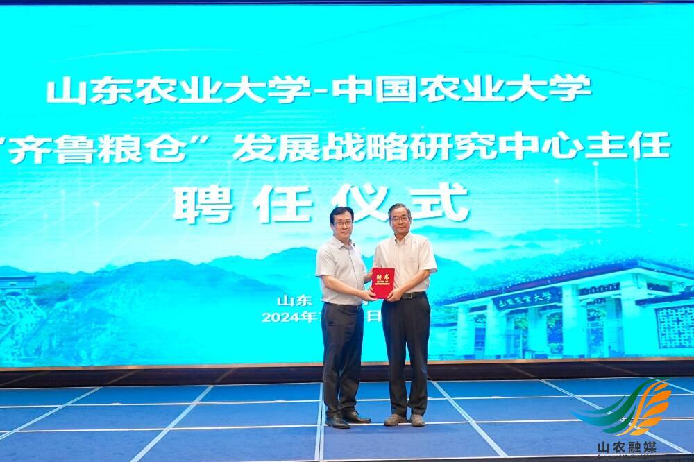 會上,徐劍波為中國農業大學教授、國家農業科技戰略研究院院長高旺盛頒發山東農業大學-中國農業大學“齊魯糧倉”發展戰略研究中心主任聘書。高旺盛教授作發展戰略主旨報告,從宏觀農業與發展戰略規劃、農業科技政策等方面出發,深入分析作物學學科發展趨勢和“齊魯糧倉”建設的戰略意義并提出一系列具有前瞻性和可操作性的建議。