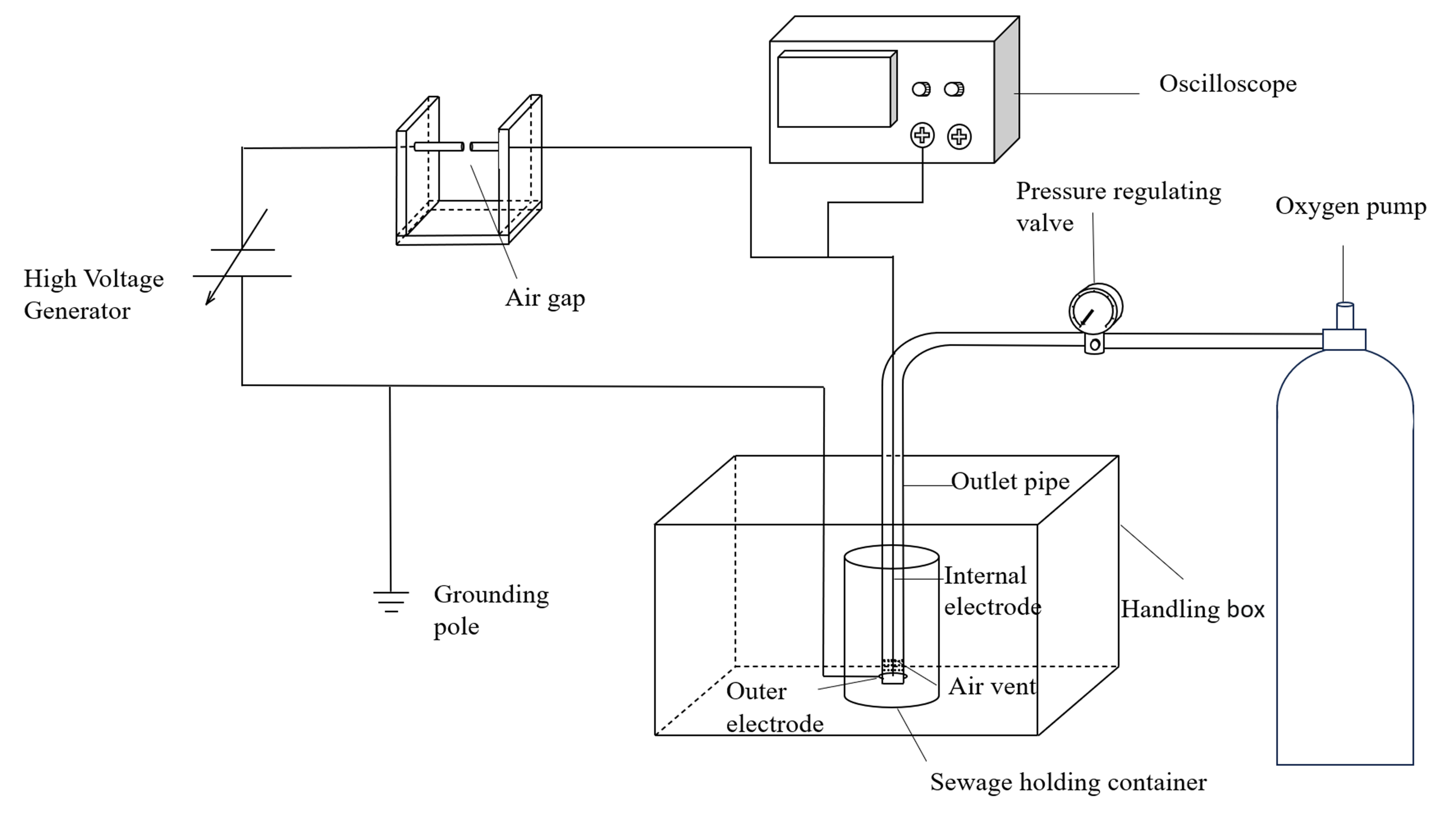 等離子體處理污水的反應機理是在特定反應環境中,通過高壓電源向水中或水面注入能量,從而在電極和接地極之間形成放電通道。在此過程中,電流導致系統溫度急劇上升,電子獲得巨大能量并與水分子發生解離。此外,低溫等離子體主要由高能電子、正負離子、強氧化性自由基、激發態分子和原子等組成。在放電處理過程中,通過電化學反應,活性物質能誘導污染物中的不飽和鍵斷裂和開環,逐步將廢水中的大分子物質分解為小分子,顯著提升了難降解物質的可生化性。同時,等離子體處理污水還可以通過殺滅細菌、病毒等微生物來達到消毒的效果。因此,等離子體處理污水是一種高效、環保的污水處理方法。基于等離子體技術的優勢,其在水處理方面的應用得到越來越廣泛地研究。本文研究了一種簡單的氣泡放電等離子體處理氨氮廢水的方法,通過模擬廢水樣品,解析了pH、電壓、脈沖頻率和反應時間對廢水處理的影響。用紫外分光光度法測定氨氮、總氮和副產物的濃度,結果表明,NH3-N更容易被堿性環境中生成的活性物質氧化。