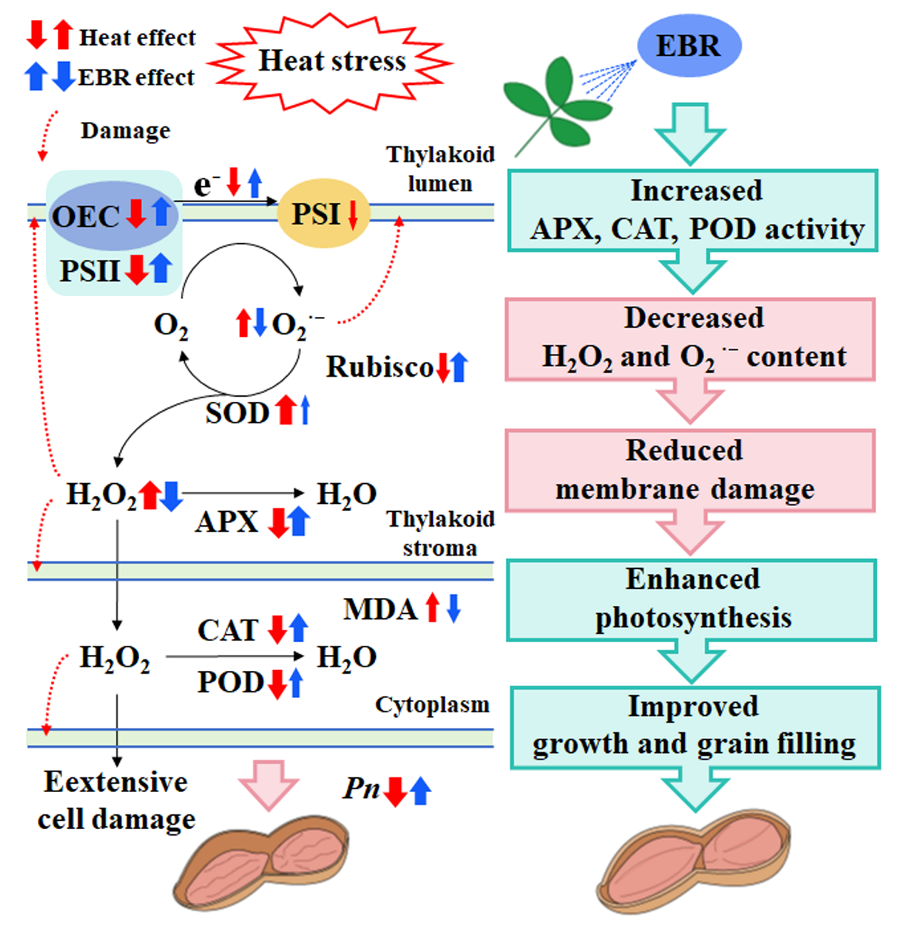 圖1. 用EBR緩解花生高溫脅迫的生理機制