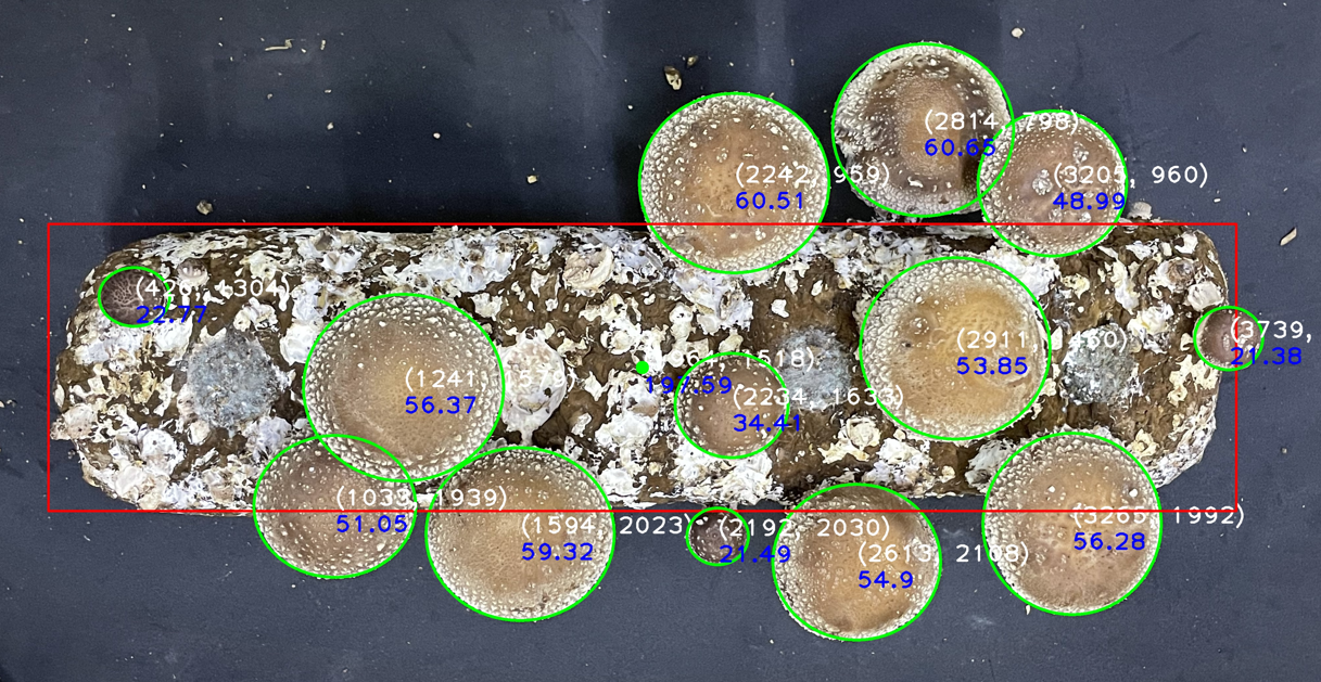 食用菌生產(chǎn)是棉稈、秸稈等農(nóng)林廢棄物循環(huán)利用的重要轉(zhuǎn)化渠道,是農(nóng)業(yè)可持續(xù)發(fā)展的重要模式。香菇是我國栽培最廣泛、產(chǎn)量最多、消費最多的食用菌之一,具有很高營養(yǎng)、藥用和保健價值,被譽為“菇中皇后”。我國香菇產(chǎn)量年產(chǎn)量高達1200萬噸,占世界總產(chǎn)量的90%以上,產(chǎn)業(yè)規(guī)模上千億,在國際上擁有絕對話語權。香菇工廠化生產(chǎn)是產(chǎn)業(yè)高質(zhì)量規(guī)模化發(fā)展的必然趨勢。然而,目前香菇采摘環(huán)節(jié)仍嚴重依賴大量人工、費時費力、成本高、作業(yè)環(huán)境高溫高濕不友好,成為香菇工廠化規(guī)模化生產(chǎn)的瓶頸環(huán)節(jié);另一方面,菌棒栽培的香菇生長密集,采摘作業(yè)空間極其有限,且需短時間內(nèi)完成采摘,機械化采收難度極大,成為香菇產(chǎn)業(yè)規(guī)模化發(fā)展的卡脖子技術。在香菇菌棒栽培的工廠化生產(chǎn)場景中,機器人選擇性采收菌棒是一種很有前景的方法,它需要通過檢測蘑菇數(shù)量、測量蘑菇大小和圓度以及計算合格蘑菇比率來準確評估目標菌棒的生長狀況。由于菌棒上香菇的隨機分布、高度差異、大小和形狀不一以及菌蓋傾斜,準確、實時和經(jīng)濟高效的評估具有挑戰(zhàn)性。