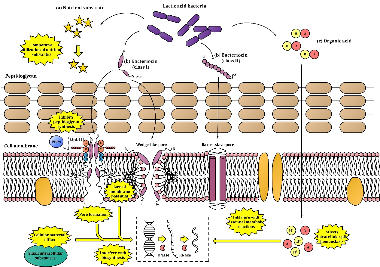 圖1.乳酸菌對單增李斯特菌的主要抑菌機制