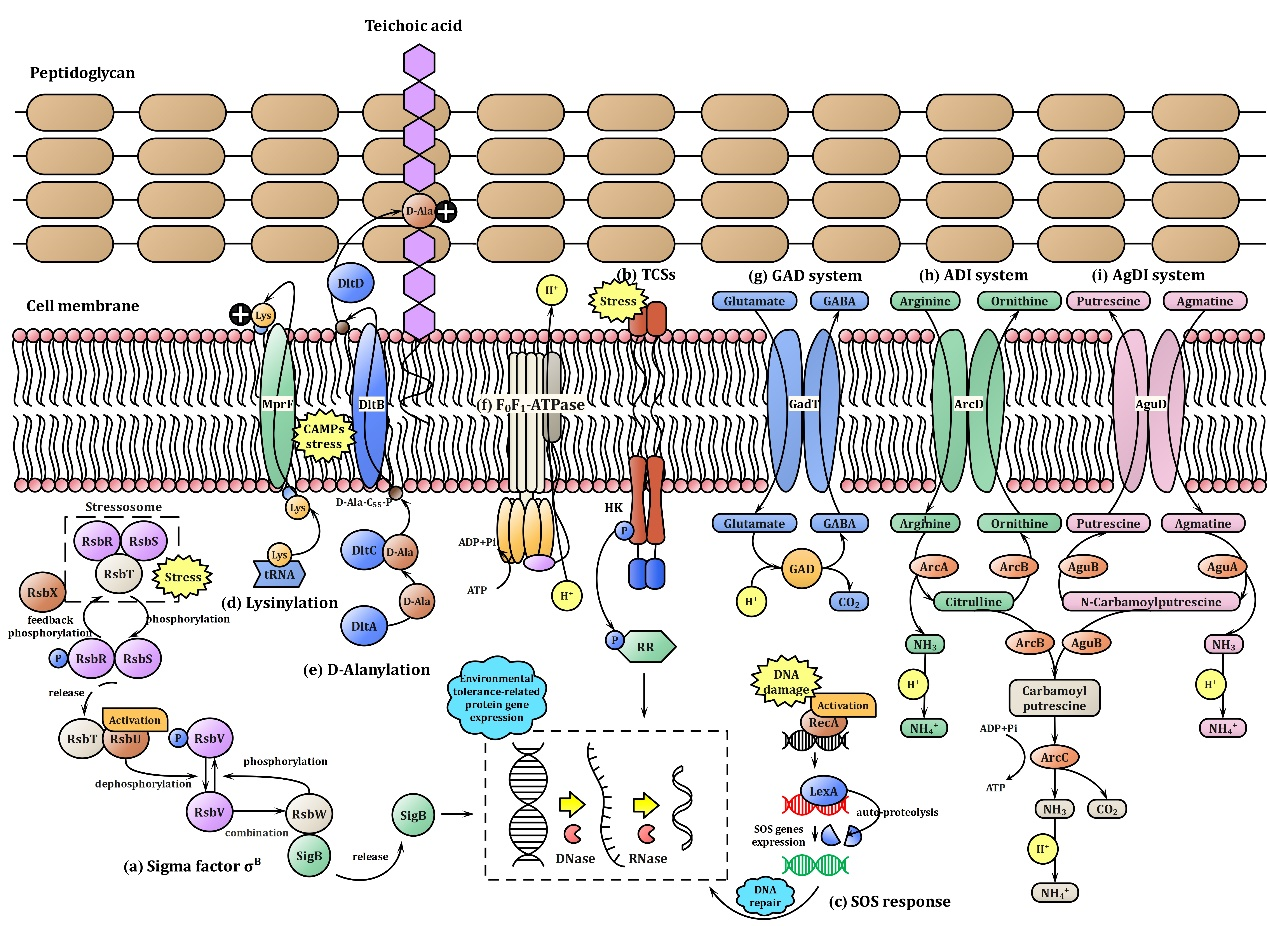 圖2.單增李斯特菌對酸和細菌素耐受的主要機制
