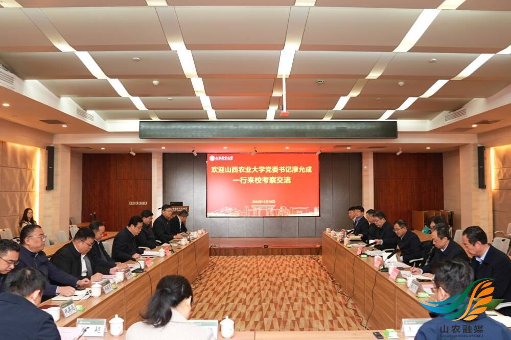山農(nóng)融媒12月11日訊 12月10日,山西農(nóng)業(yè)大學(xué)黨委書記廖允成一行來校,就“雙一流”建設(shè)、教育科技人才三位一體改革、黨建雙創(chuàng)等工作進行考察調(diào)研。學(xué)校黨委書記徐劍波,黨委副書記、校長冷暢儉會見客人并座談交流。學(xué)校黨委副書記嵇景濤,黨委常委、副校長王勇,山西農(nóng)業(yè)大學(xué)黨委副書記薛建武,黨委常委、副校長(山西省農(nóng)科院副院長)李捷參加活動。
