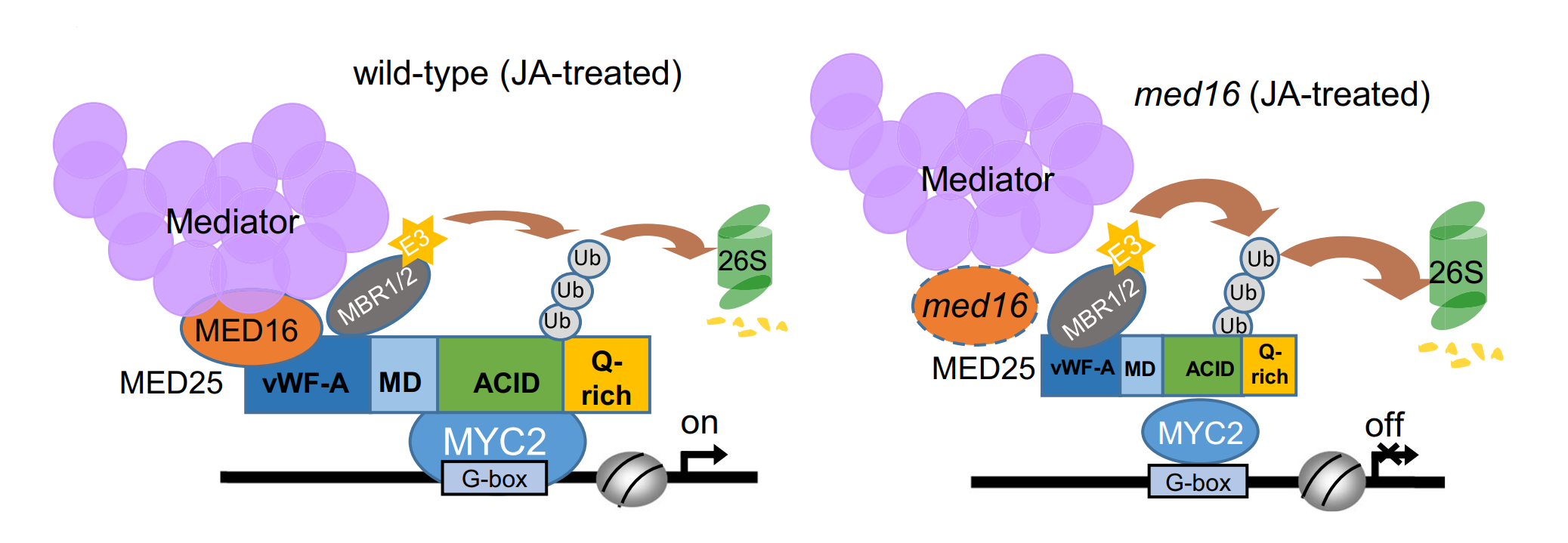 圖1 MED16–MBR模塊通過(guò)調(diào)控MED25穩(wěn)定性進(jìn)而精細(xì)調(diào)節(jié)茉莉酸信號(hào)強(qiáng)度