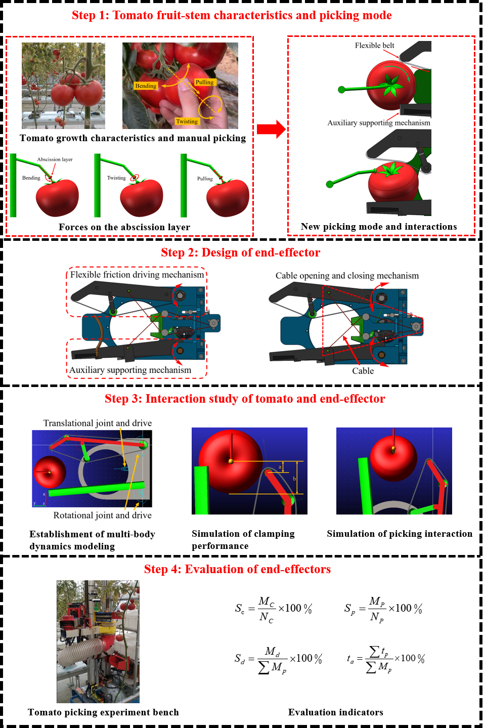近日,機(jī)電學(xué)院苑進(jìn)教授團(tuán)隊(duì)在《Computers and Electronics in Agriculture》,發(fā)表題為“Design and interaction dynamics analysis of a novel hybrid bending-twisting-pulling end-effector for robotic tomato picking”的最新研究成果。博士研究生方家明為論文第一作者,機(jī)電學(xué)院苑進(jìn)教授和劉雪美教授為共同通訊作者,辛振波副教授、戴念祖博士生參與課題研究,我校為唯一通訊單位。