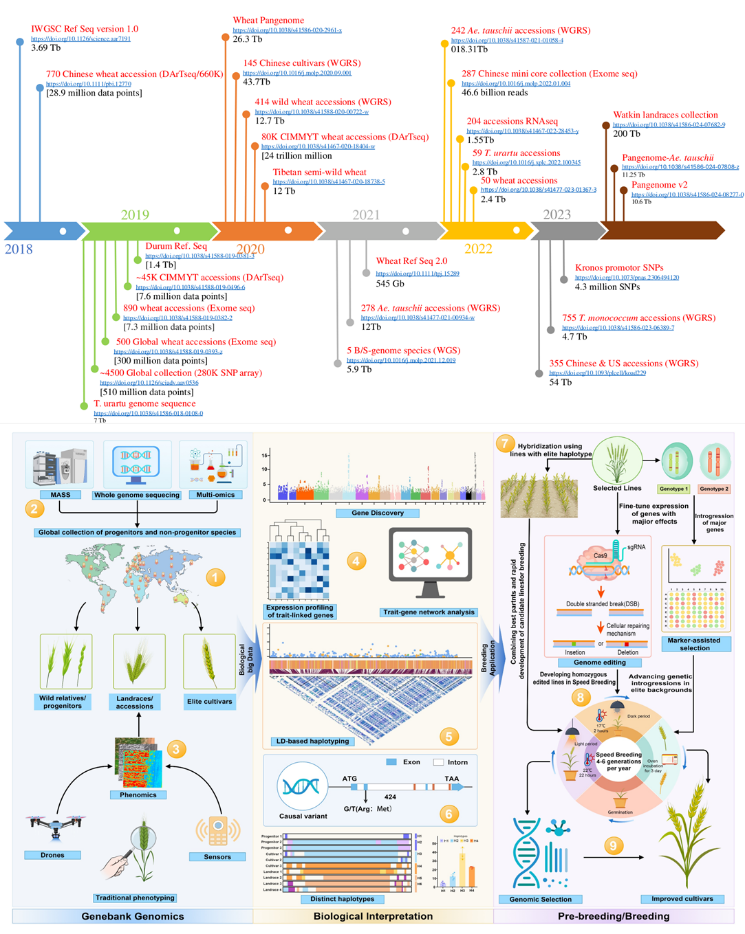 近日,山東農業大學、中國農業科學院作物科學研究所小麥品質研究與新品種選育團隊與CIMMYT合作在《Molecular Plant》發表了題為“Mobilizing Triticeae diversity from Genebanks to farmer’s field”的評述,系統總結了近年來小麥基因組學研究進展與田間育種應用面臨的挑戰。