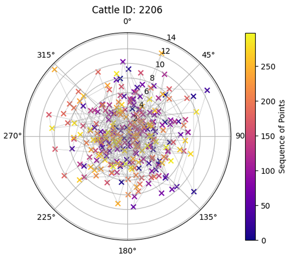 極坐標(biāo)變換和高精度坐標(biāo)點重現(xiàn)技術(shù)的結(jié)合,為奶牛發(fā)情檢測提供了一種全新的多學(xué)科方法,不僅提高了檢測的準(zhǔn)確性,還能夠捕捉奶牛在發(fā)情期間的細(xì)微動作變化。這一發(fā)現(xiàn)不僅加深對奶牛行為模式的理解,也為未來的精準(zhǔn)畜牧業(yè)管理提供了新的技術(shù)路徑。