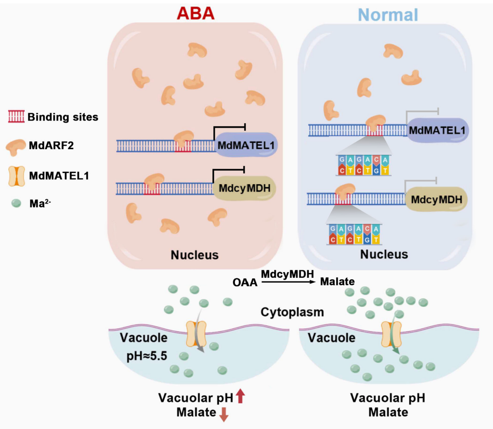 ABA信號調控蘋果果實酸度的分子模型