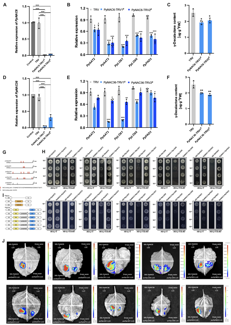 圖1 PpNAC6和PpNAC36在桃果實γ-癸內酯生物合成中的功能研究