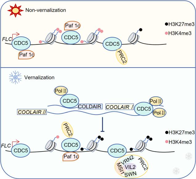 圖1.CDC5調(diào)控春化開花的工作模型