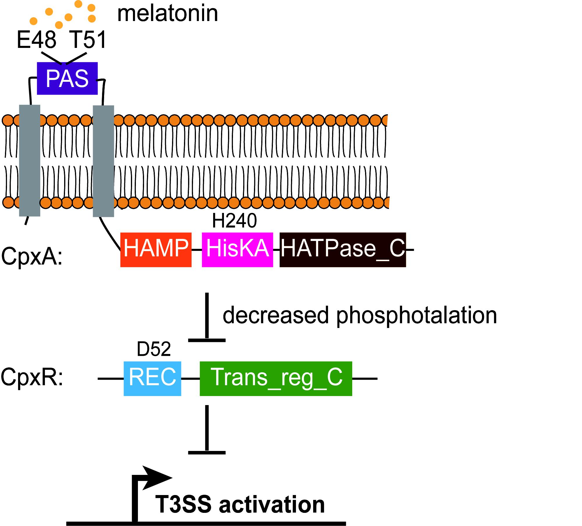 圖1 褪黑素通過抑制CpxA/R磷酸化級聯反應來驅動III型分泌系統轉錄重編程
