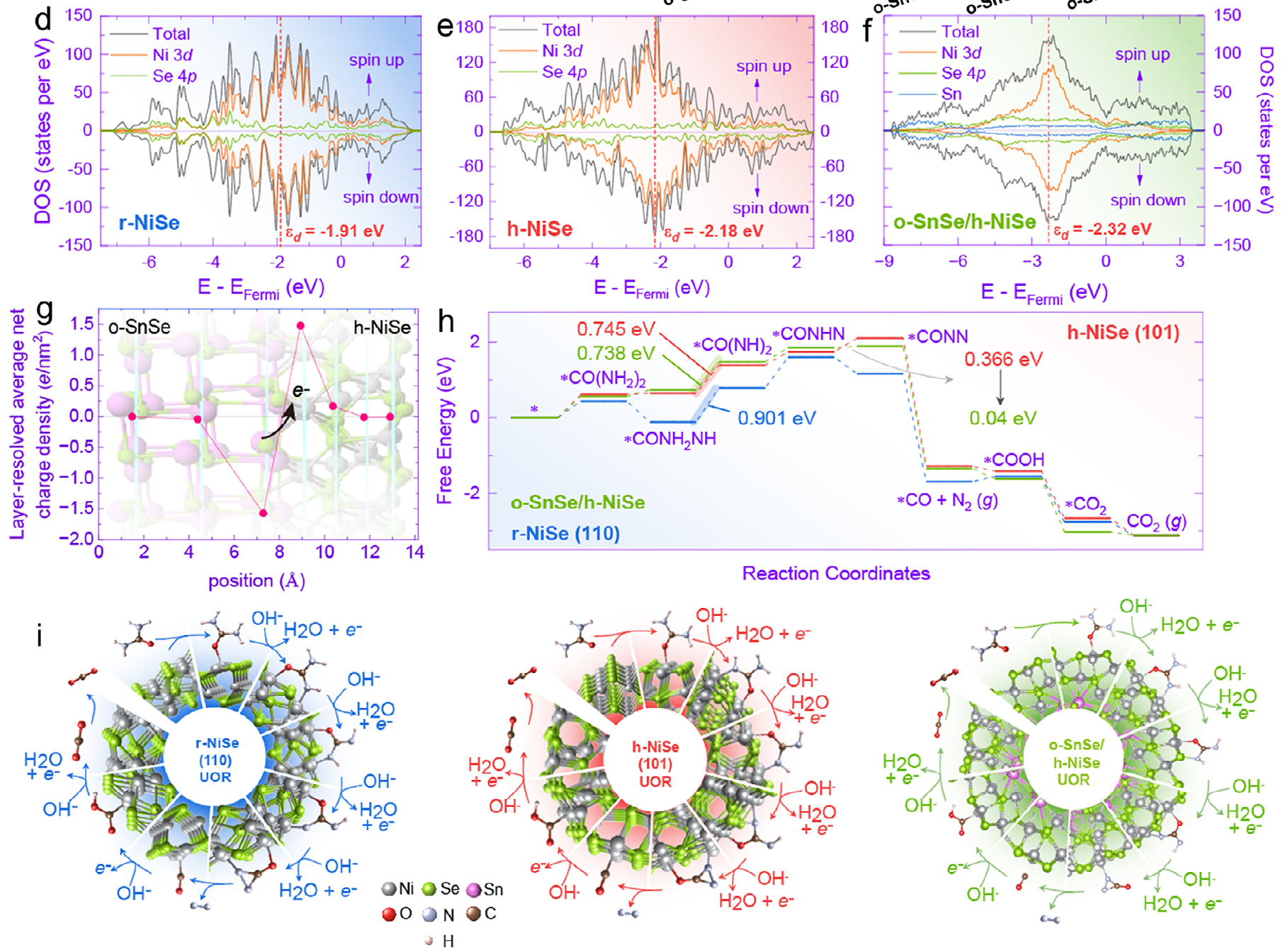 圖1 理論計算揭示了h-NiSe與異質結相對于r-NiSe的UOR活性增強機制