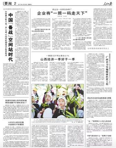 人民日報在要聞版(二版)刊發了記者劉成友的新聞報道《山東農大成功克隆小麥雄性不育基因》。文章說,記者28日從山東農業大學獲悉:該校付道林教授領銜的科研團隊在太谷核不育小麥研究方面取得重大突破,成功克隆太谷核不育基因并對其機理進行探討,為實現小麥等作物雜交制種創造了條件。
